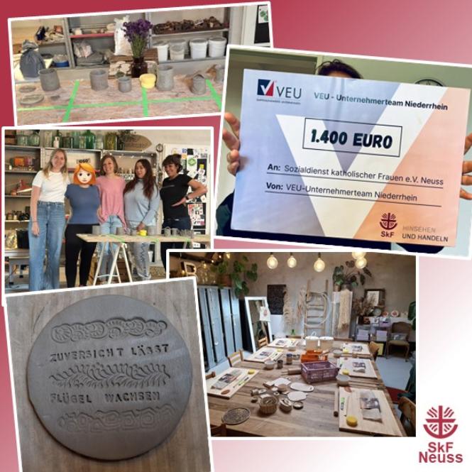 Dank einer großzügigen Spende des VEU – Unternehmerteam Niederrhein konnten einige der Frauen aus dem Projekt „Neu(e)ss Wohnen für Frauen“ für einen Tag dem Alltag entfliehen und an einem Töpfer-Workshop in Düsseldorf-Hamm teilnehmen.
