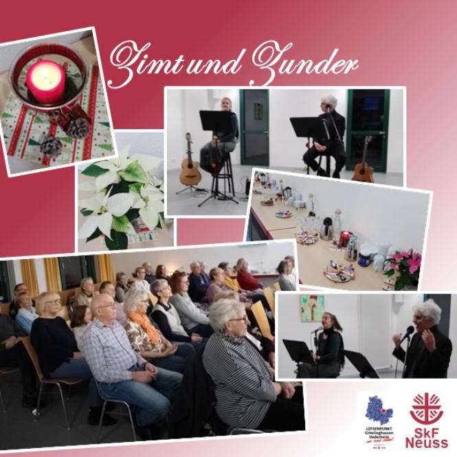 Zum Jahresabschluss initiierte der Lotsenpunkt Grimlinghausen/Uedesheim am 09.12.2025 im Pfarrsaal von St. Cyriakus die Veranstaltung „Zimt & Zunder“. Mittlerweile ist dieser Auftritt von Anke Jansen und Tim Fleischer zu einer liebgewonnenen, adventlichen Gewohnheit und einem echten Highlight für die Senior*innen geworden. Neben Musik und Gesang genossen die rund 30 Besucher*innen nachdenkliche, vor allem aber die heiteren Beiträge. Nach dem Auftritt der Künstler gab es die Möglichkeit zum gemütlichen Beisammensein bei Kaffee und Schnittchen.