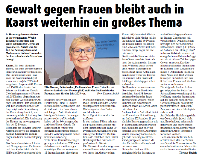 Pressebericht über die Arbeit des Frauenhauses Neuss