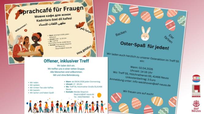 Im Treff 55 in Neuss-Weckhoven lädt der SkF Neuss zu verschiedenen offenen Angeboten ein, die Raum für Begegnung und Austausch schaffen.